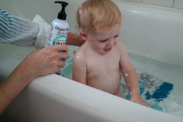 We have been living in our bathtub lately! Greyson has determined that he will not nap or sleep without first having a bath. (This is a trait he got from his dad who loves to shower a million times a day.) Being that he is bathing so often, what we are putting on his skin is becoming much more important to me.